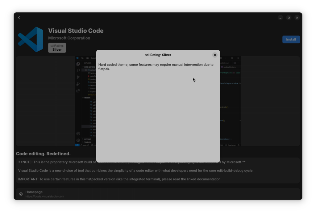 Many approved apps also have “stillRatings” which will point out any issues that the app may have such as poor system integration, or Flatpak/Wayland issues.