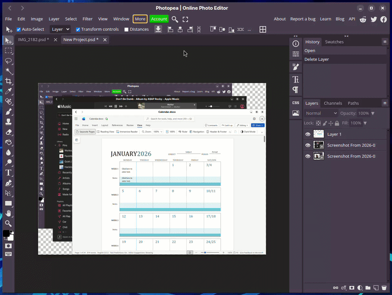 I frequently use Microsoft Office Online for collaborative college work, Notion for managing my time and my life, Photopea as my preferred Photoshop alternative on Linux, and Apple Music as my preferred music streaming service. None of these have a native Linux application, and frustrated needing to do something on Notion, than having to open a web browser, find my bookmark, and than use it in a clutter interface full of other browser elements. With our custom Electron-based web-app runtime called SWAI, now I can use these apps as if they were native apps on my computer.